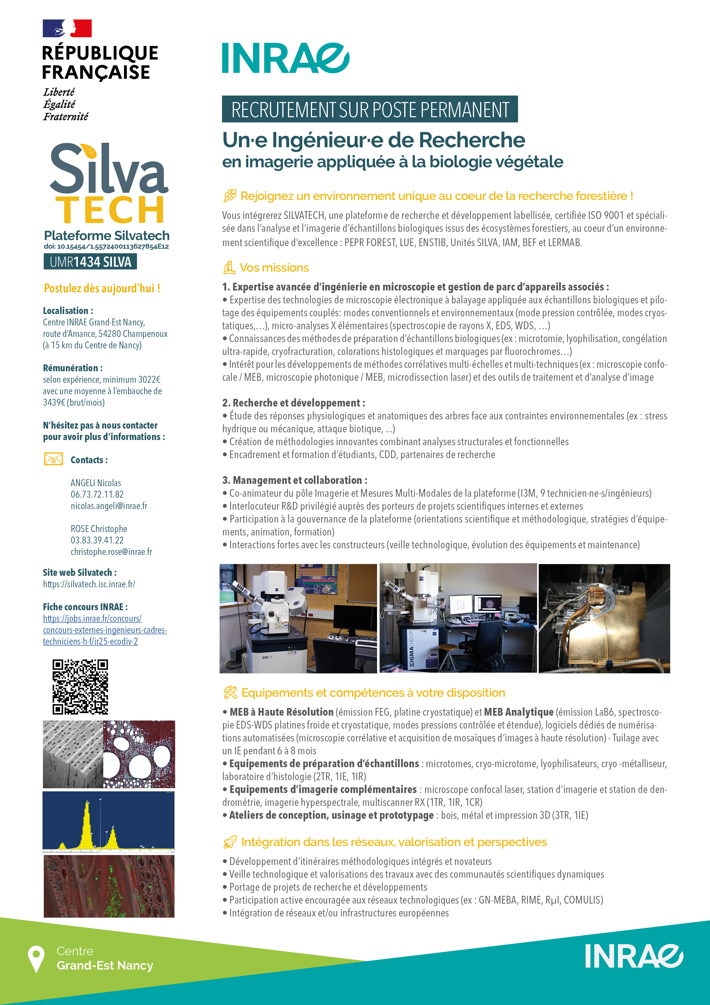 - En collaboration avec les communautés de recherches locales, nationales et européennes, vous mettrez à profit vos connaissances et vos compétences initiales fortes en biologie et physiologie végétale aux échelles fines, pour mieux appréhender et caractériser par imagerie, les réponses physiologiques et anatomiques de l'arbre aux contraintes de son environnement.